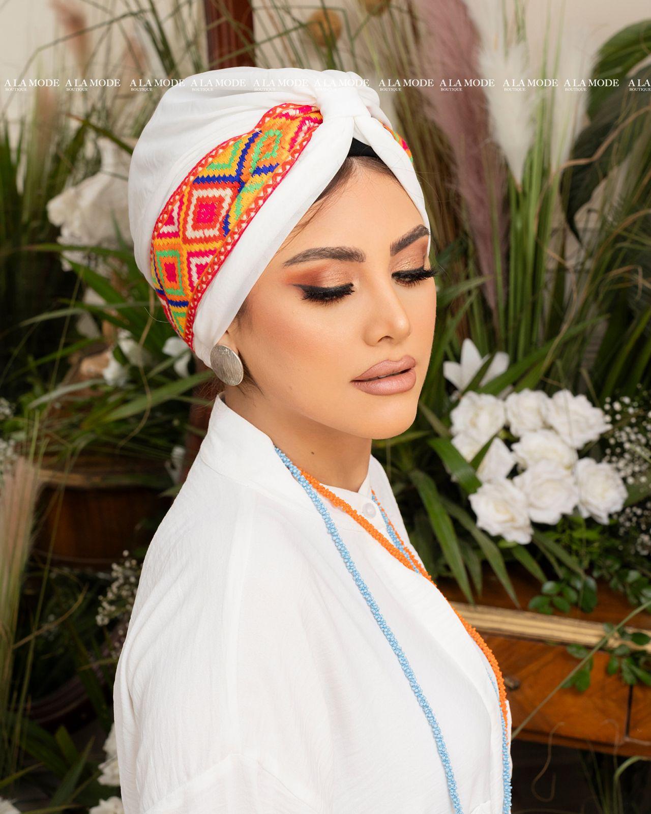 White Colorful Easy Wear Turban
